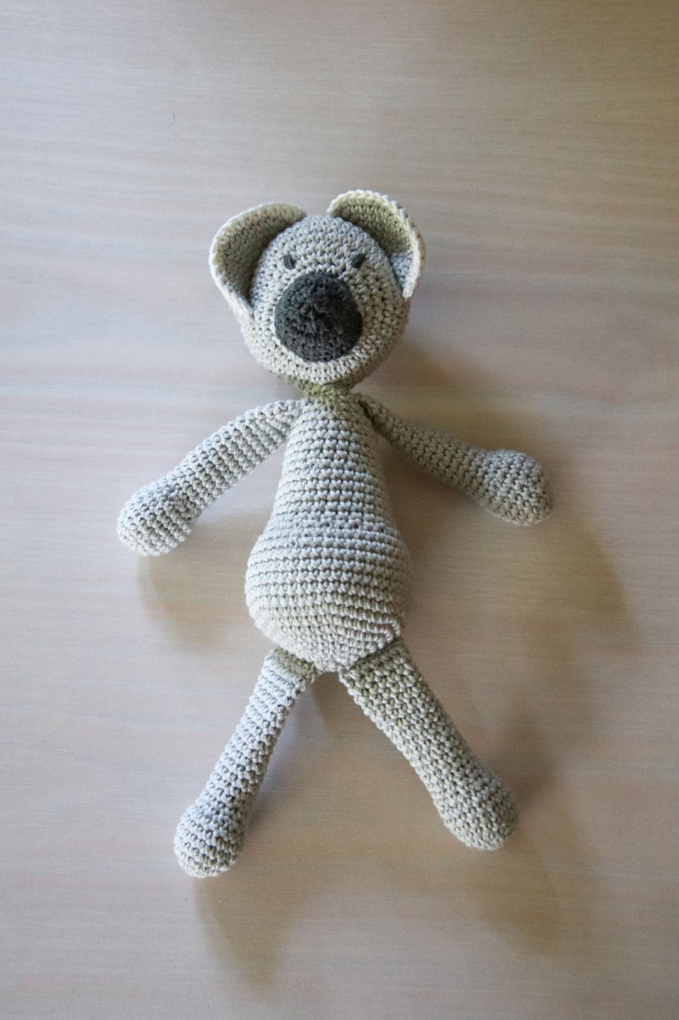 An adorable koala perfect for newborns, children and adults! Soft, floppy and cuddly, she can sit up on her own. She’s very durable and all elements are secured extra well with no plastic parts so no worry with newborns!